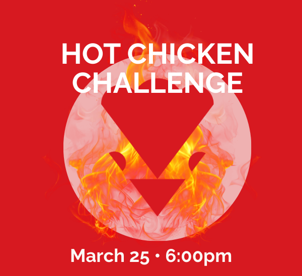 Don't miss out on our returning Hot Chicken Challenge! Think you have what it takes? Sign up using the link below and we will see you Wednesday March 25 at 6:00 PM. We would hate to see you chicken out!